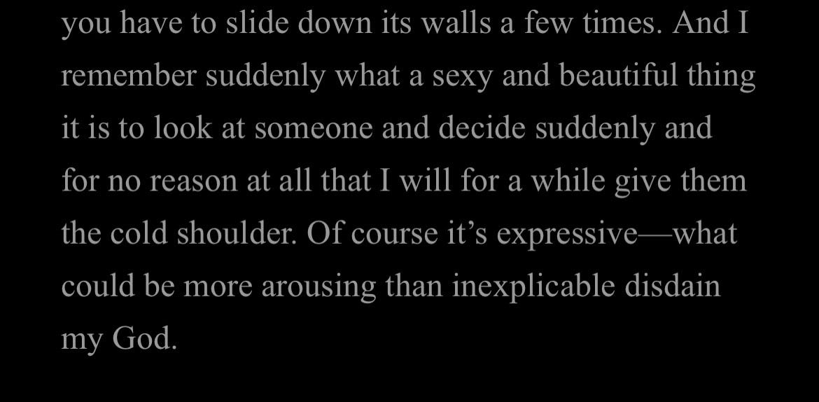 after reading a life’s work, i was desperate to get further inside cusk’s head. i am fascinated and discontented by cusk (and similar authors like shelia heti) who write autofiction yet cloak themselves in layers of incomprehensibility. i love how impossible cusk feels, how unyielding she is to more conventional ways of being known, even though i imagine it is frustrating to have her as a friend or teacher. there is a double-bind women writers who write about themselves are caught in and i find all of cusk’s idiosyncrasies and contradictions a profound form of protest.